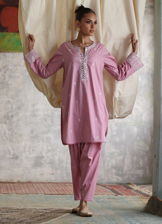 Baby Pink/Mauve Embroidered CO-ORD Set